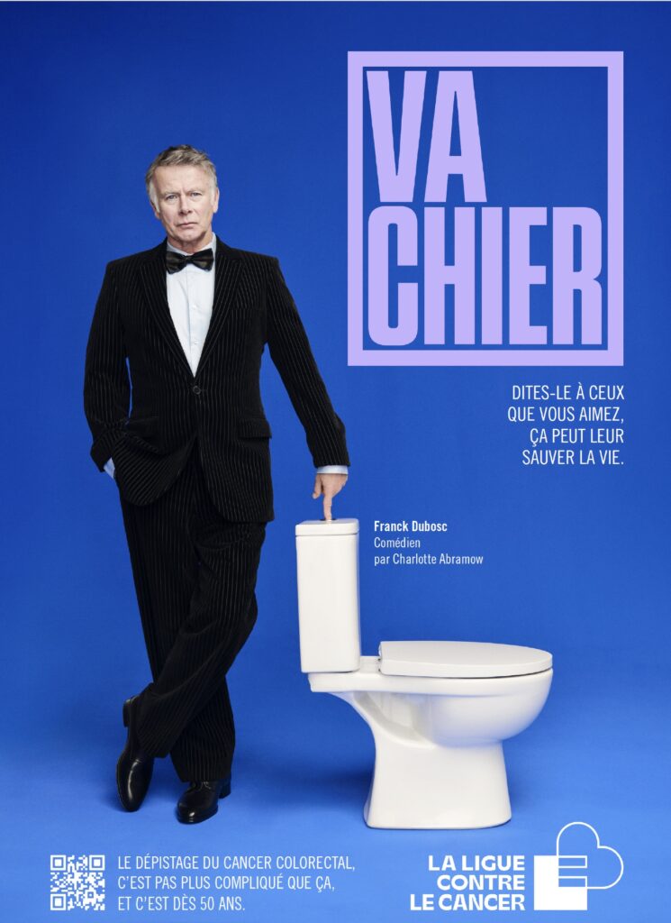 Avec son slogan choc, « Va chier », la dernière campagne de la Ligue Contre le Cancer, mettant en scène des personnalités pour sensibiliser au cancer colorectal, a pu déranger. Et c’était le but recherché afin d’inciter les personnes de plus de 50 ans à se faire dépister. Car chaque année ce sont plus de 17 000 personnes qui décèdent de ce cancer alors que le dépistage rapide, gratuit et simple permet de sauver de nombreuses vies. Aujourd’hui, seules 33 % des personnes ciblées l’ont effectué. Et vous ?